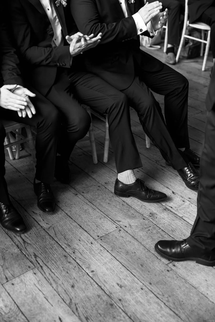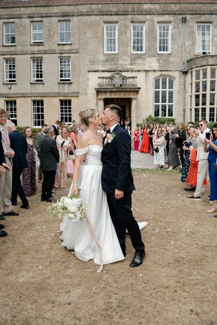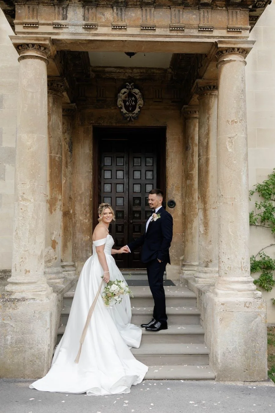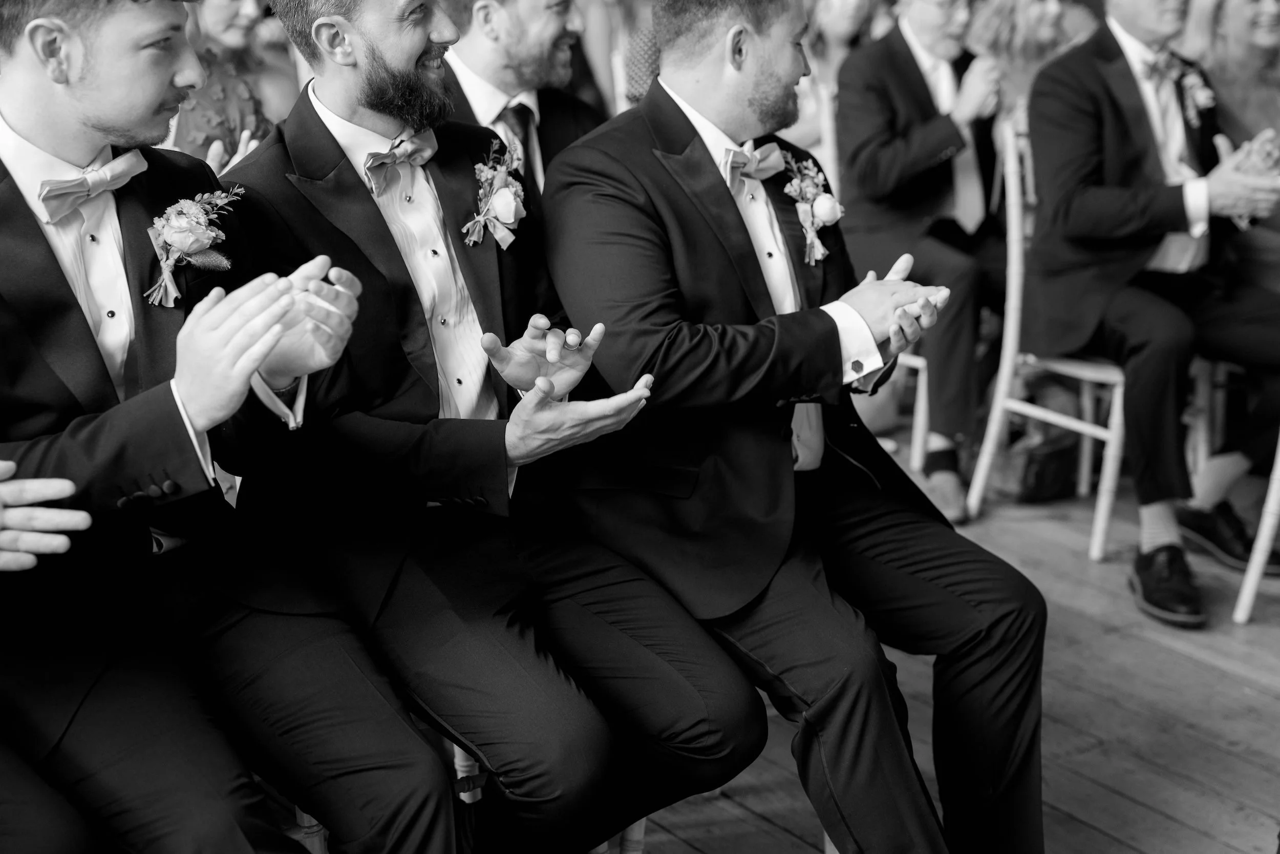 The groom and groomsmen wore classic, understated tailoring from Moss Bros, perfectly aligning with the sophisticated yet relaxed vibe of the day.